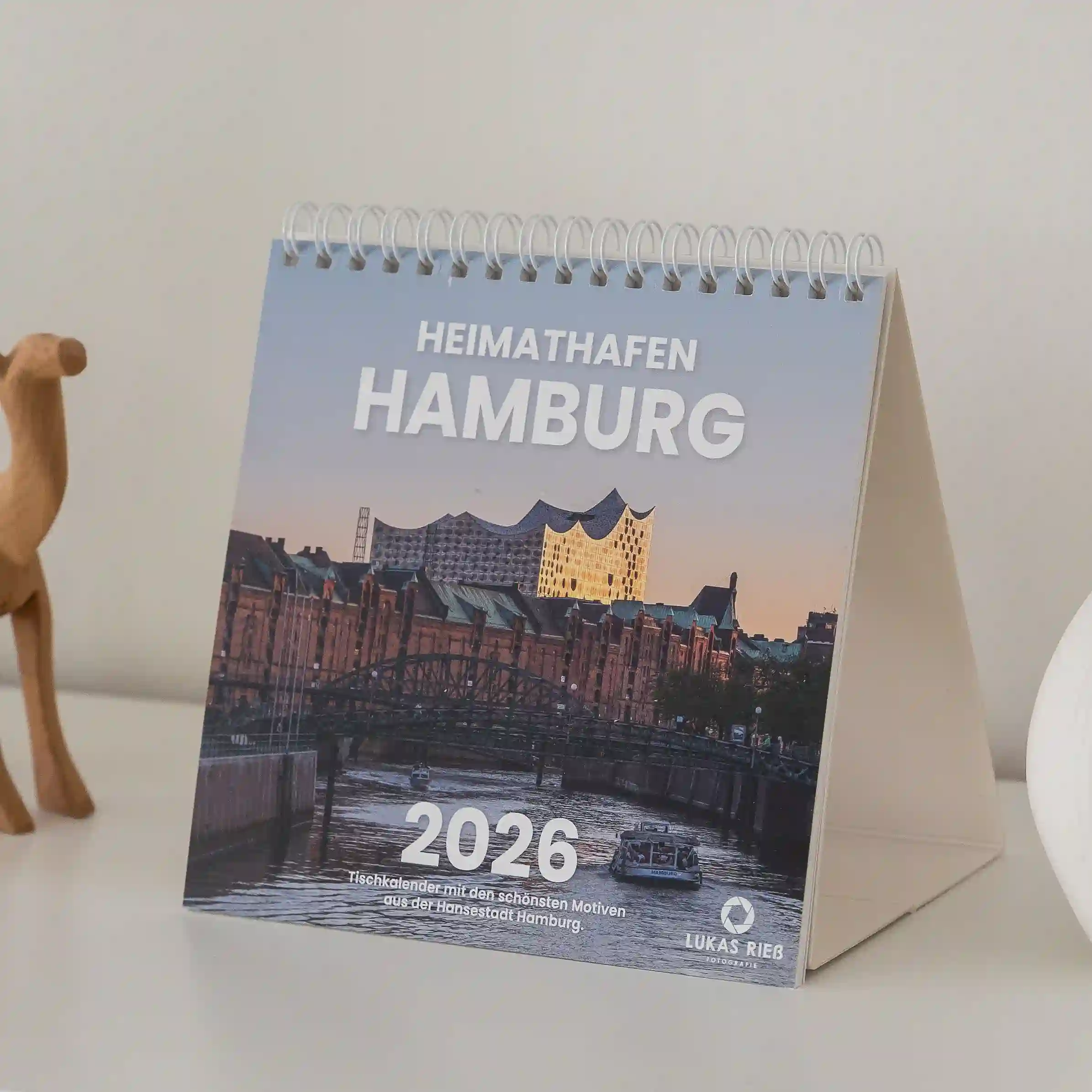 In meinem Hamburg Tischkalender „Heimathafen Hamburg 2026“ habe ich zwölf Stadtansichten zusammengestellt, die den unverwechselbaren Charme zwischen maritimem Flair und lebendiger Großstadt im Jahresverlauf zeigen. Die Stadt an der Elbe begeistert mit eindrucksvollen Wahrzeichen – von der Elbphilharmonie über die Alster bis zur Speicherstadt. Alle Motive im Kalender stammen aus meiner eigenen fotografischen Arbeit vor Ort und zeigen Hamburg im Frühling, Sommer, Herbst und Winter.